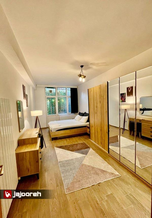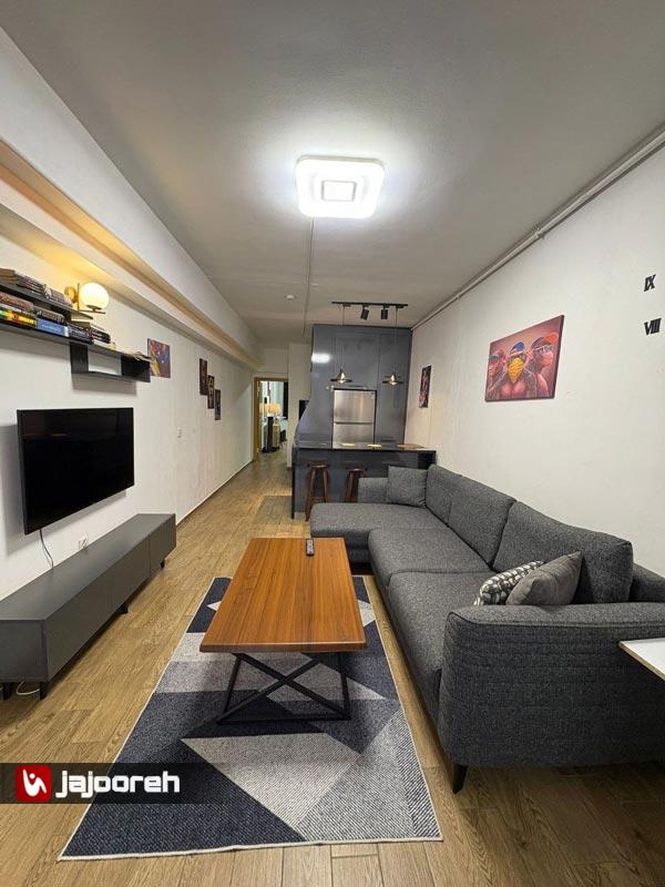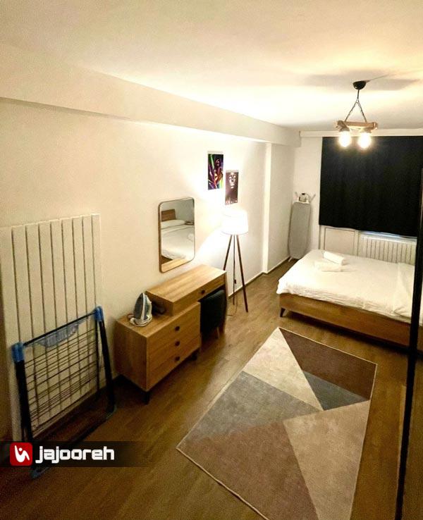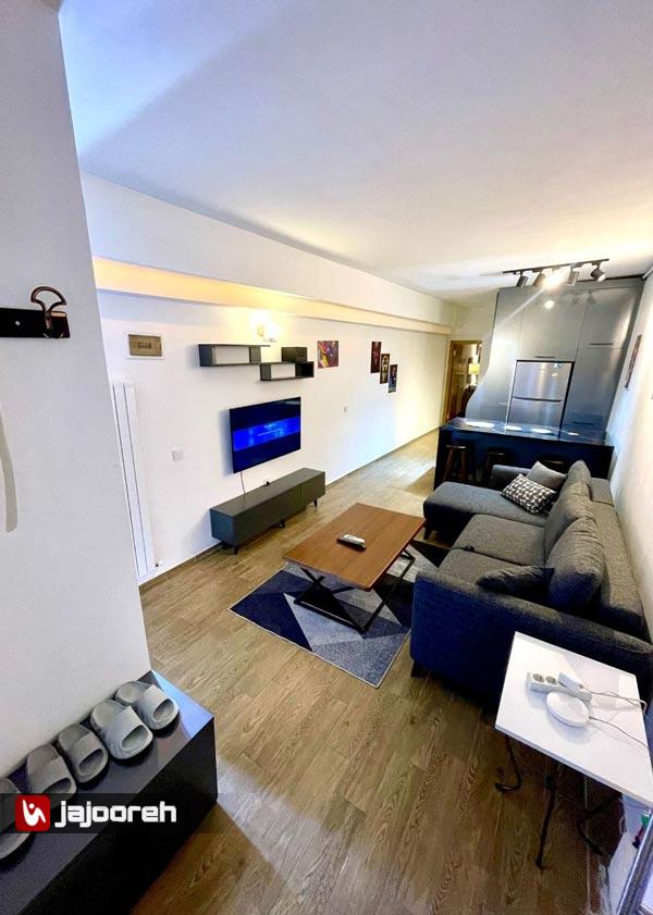 امکانات : سالن پذیرایی ، کولر گازی ، مبلمان تختشو ، میز و صندلی نهار خوری ، تلویزیون ، کمد لباس ، اتو ، جارو برقی