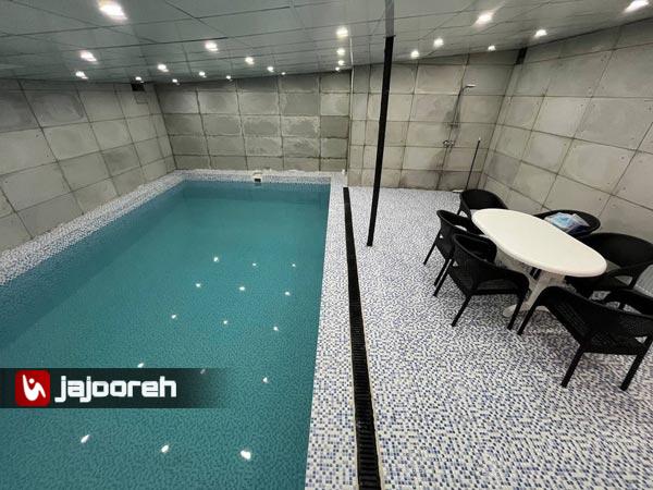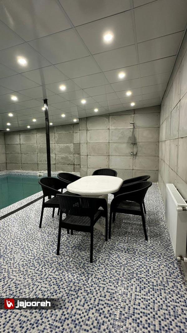 امکانات اقامتگاه: – استخر آبگرم با سیستم تصفیه اتوماتیک به ابعاد 4 در 8 متر با عمق 1.6 تا 1.8 متر –