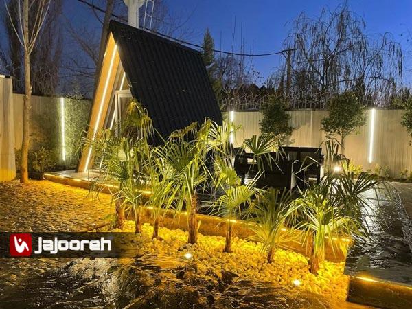 داخل حیاط ویلا یک کلبه سوئیسی قرار دارد و کاملا در اختیار میهمان است.