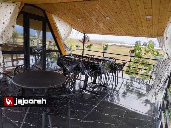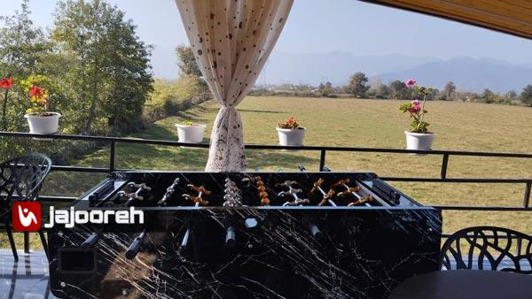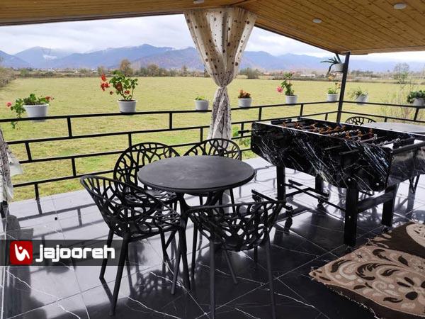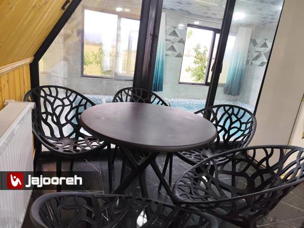 600 مترحیاط با چیدمان میز و صندلی داره و سیستم صوتی برای جشن تولد وجشن های خانوادگی و مختلف دارد