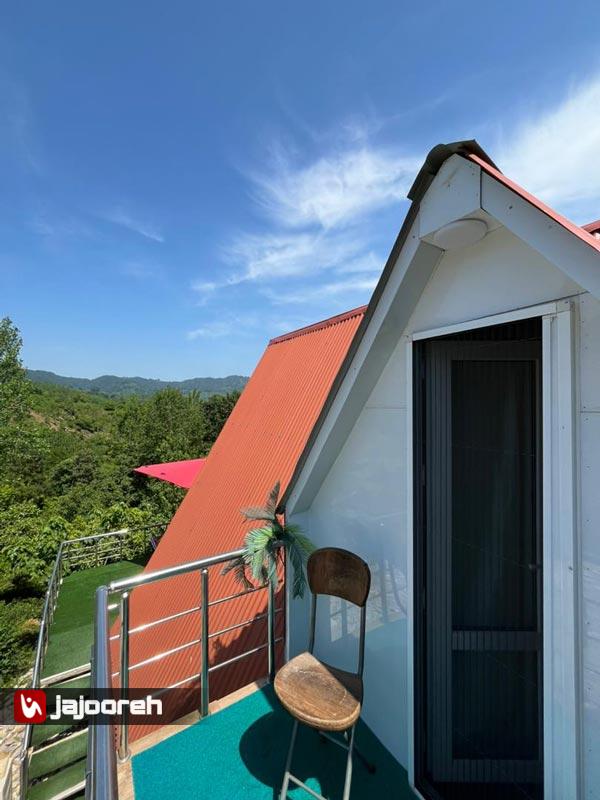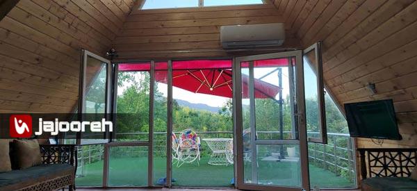این کلبه سوئیسی یکخوابه با حیاطی دلباز و بالکن در محیطی امن با چشم انداز زیبا در روستای خوش آب و هوای زمیدان واقع شده است