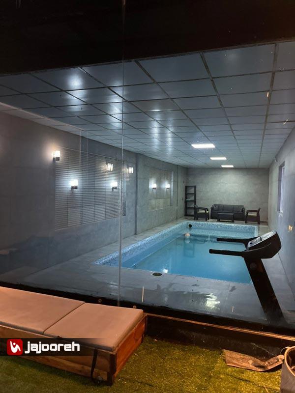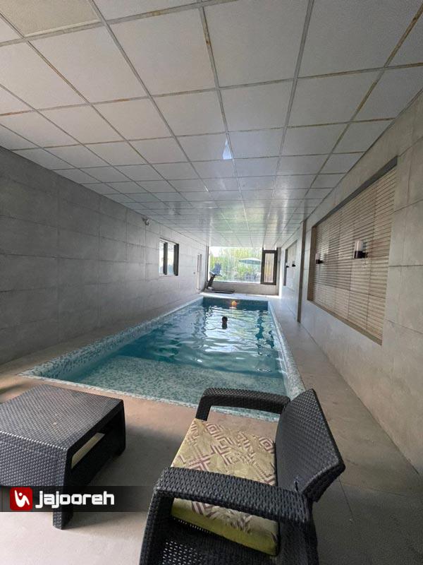 گفتنى است دسترسى به استخر سريوشيده از داخل پذيرايى، راهروى اتاقها و حياط امكان پذير است،