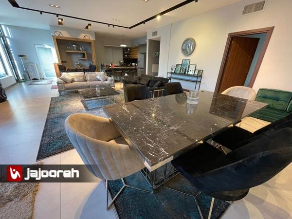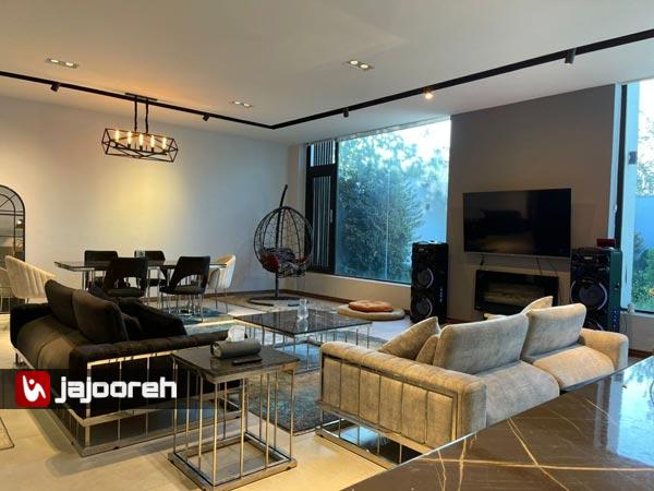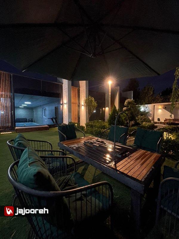 مجهز به ميز و صندلى باغى در محيط شهركى در تهران ويلا واقع شده است.