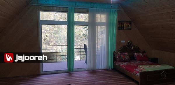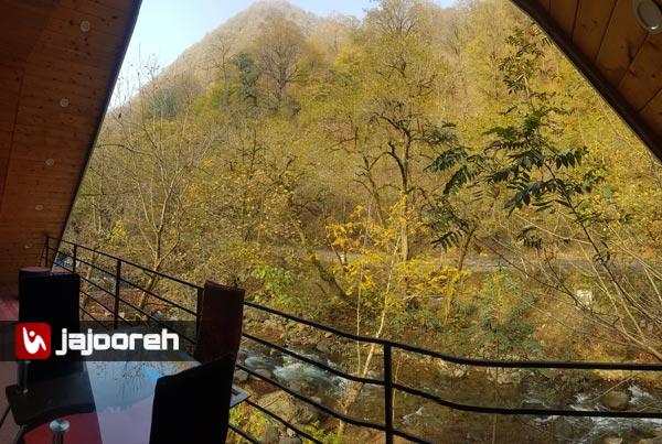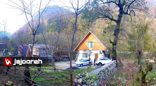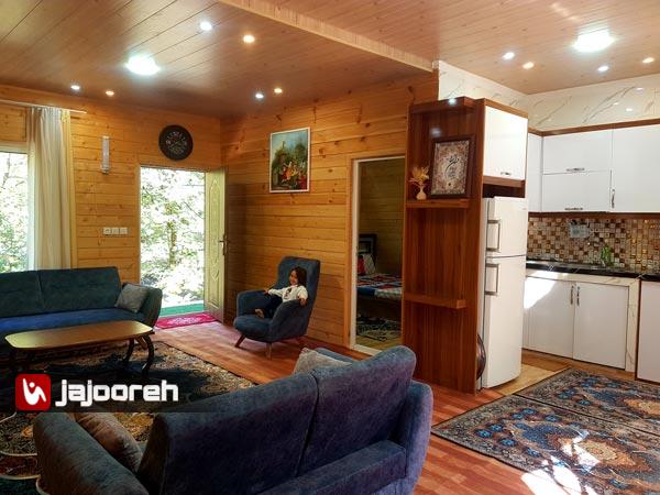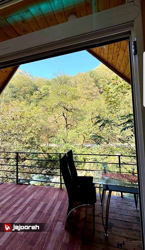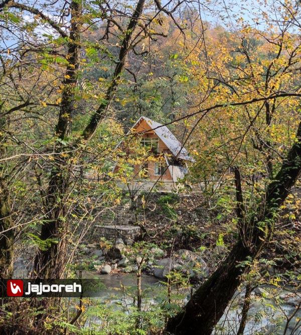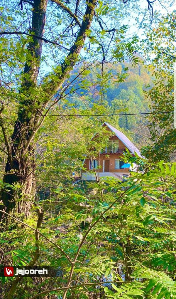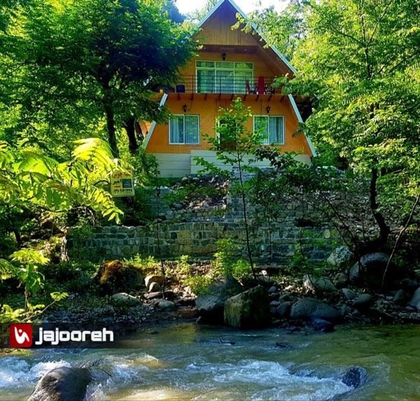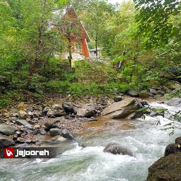 کلبه چوبی امیر دربست لب رودخانه و وسط جنگل